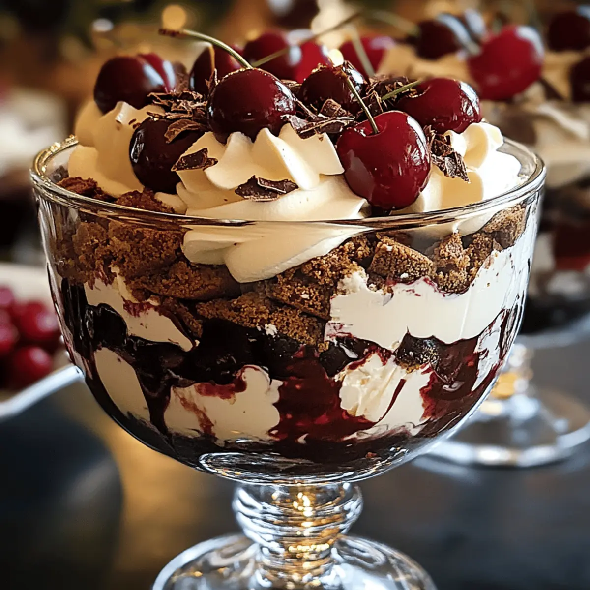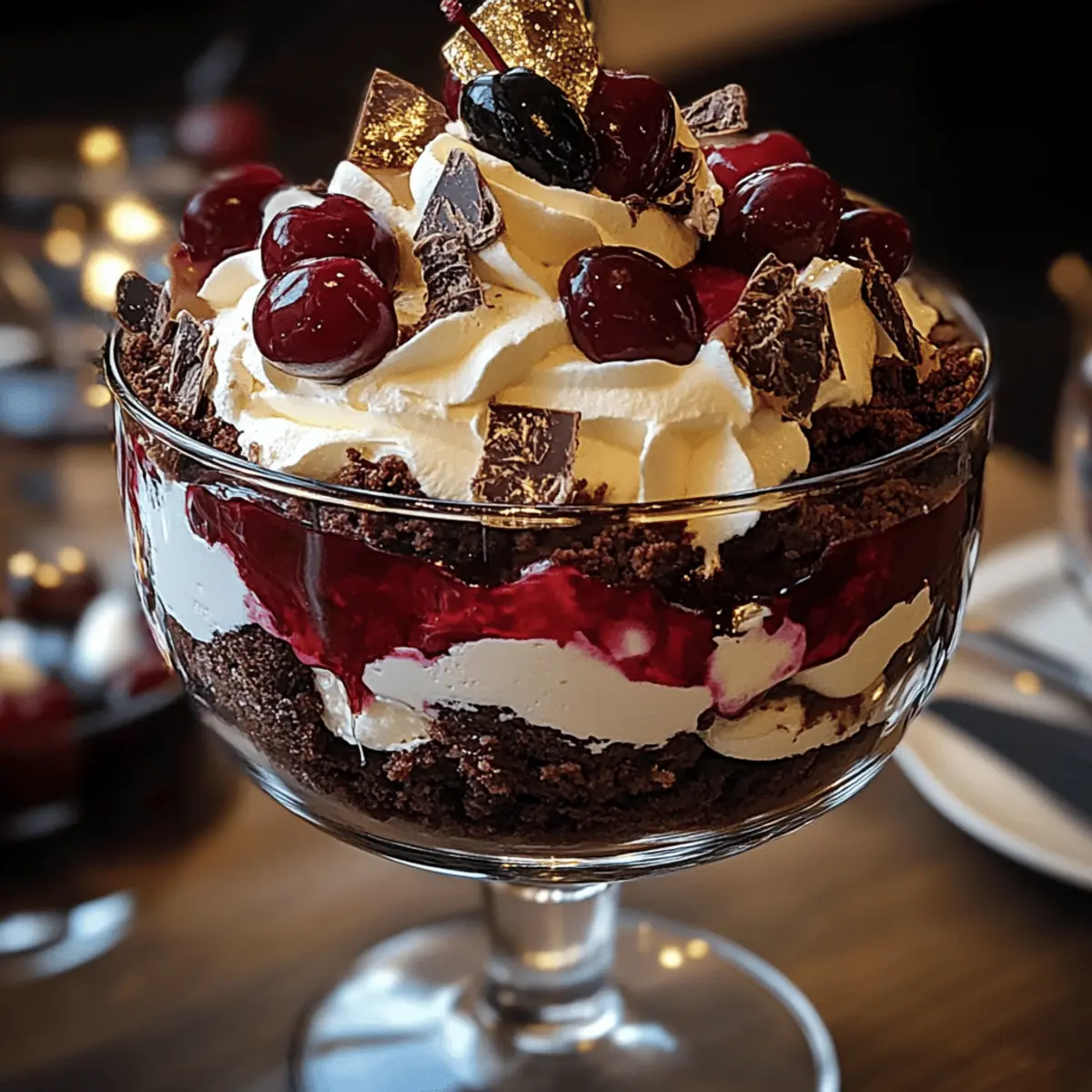Trifle de la Forêt-Noire : Délice Festif Sans Cuisson Posted on October 14, 2025October 14, 2025 by Juliette Mercier Le crépitement de la neige contre les fenêtres m’a rappelé que les fêtes approchent à grands pas, et avec elles, l’envie de réaliser des douceurs festives. C’est dans cet esprit que je vous propose aujourd’hui un Trifle de la Forêt-Noire, un dessert aussi beau que délicieux, parfait pour éblouir vos convives lors de vos rassemblements de fin d’année. Avec ses couches de gâteau au chocolat moelleux, de crème fouettée légère et de cerises juteuses, ce dessert sans cuisson se prépare facilement à l’avance, ce qui vous laisse du temps pour profiter de la compagnie de vos proches. Imaginez cette merveille au centre de votre table, captivant tous les regards et promettant un goût irrésistible. Alors, êtes-vous prêts à ajouter une touche festive à vos célébrations ? Pourquoi adorer ce trifle de la Forêt-Noire ? Facilité : Ce dessert sans cuisson est incroyablement simple à réaliser et parfait pour ceux qui souhaitent impressionner sans passer des heures en cuisine. Éclat festif : Avec ses couches de chocolat, de crème et de cerises, le trifle apporte une touche chic et couleur à votre table de fête. Textures en harmonie : La combinaison de la crème onctueuse et du gâteau au chocolat moelleux offre une expérience gustative douce et satisfaisante. Préparation à l’avance : Préparez-le la veille pour que les saveurs se mélangent parfaitement et que vous puissiez profiter de votre soirée sans stress. Polyvalence : N’hésitez pas à personnaliser avec d’autres fruits ou en remplaçant le gâteau au chocolat par un gâteau à la vanille, selon vos envies ! Pour d’autres idées de desserts, consultez notre recette de gâteau au chocolat facile. Ingrédients du Trifle de la Forêt-Noire • Note : Rassemblez ces ingrédients pour un dessert festif et savoureux ! Pour le gâteau Gâteau au chocolat – Utilisez un gâteau moelleux, fait maison ou acheté en magasin, pour une base riche. Pour la crème Crème fouettée – Cette crème légère apporte une texture aérienne, parfaite pour contraster avec le chocolat. Sucre en poudre – Ajoutez ce doux parfum pour sucrer la crème fouettée; optez pour un substitut de sucre si vous préférez moins de calories. Pour la garniture Cerises – Les cerises fraîches ajoutent une douceur juteuse; à défaut, optez pour des framboises ou des cerises au bourbon pour plus de saveur. Kirsch (eau-de-vie de cerise) – Parfait pour intensifier le goût des cerises; vous pouvez le retirer si vous ne souhaitez pas d’alcool. Étapes de préparation pour le Trifle de la Forêt-Noire Step 1 : Préparation du gâteau Commencez par cuire le gâteau au chocolat selon les instructions de votre recette choisie. Une fois cuit, retirez-le du four et laissez-le refroidir complètement sur une grille. Lorsque le gâteau est bien frais, coupez-le en cubes d’environ 2 à 3 centimètres pour former la base du trifle. Step 2 : Fouetter la crème Dans un grand bol, versez la crème et commencez à la fouetter à vitesse moyenne à élevée jusqu’à obtenir des pics mous, ce qui devrait prendre environ 3 à 5 minutes. Ajoutez lentement le sucre en poudre tout en continuant à fouetter, jusqu’à ce que la crème soit douce et aérée. Attention à ne pas trop fouetter pour ne pas transformer la crème en beurre. Step 3 : Monter le trifle Prenez un plat à trifle transparent pour mettre en valeur les belles couches de votre Trifle de la Forêt-Noire. Disposez une première couche de morceaux de gâteau au chocolat au fond du plat, puis étalez une généreuse couche de crème fouettée par-dessus. Ajoutez ensuite une couche de cerises fraîches ou de cerises au bourbon pour apporter couleur et saveur. Step 4 : Répéter les couches Répétez le processus en ajoutant une nouvelle couche de gâteau, suivie de crème fouettée et de cerises. Continuez jusqu’à ce que tous les ingrédients soient utilisés, en terminant par une couche de crème fouettée sur le dessus. Cela donnera une belle finition à votre dessert et le rendra visuellement attrayant. Step 5 : Réfrigérer Couvrez le plat de trifle avec du film plastique et placez-le au réfrigérateur pendant au moins 4 heures, ou idéalement toute la nuit. Cela permet aux saveurs de se mélanger et au gâteau d’imbiber l’humidité de la crème et des cerises, créant ainsi une texture merveilleusement agréable. Step 6 : Garnir et servir Avant de servir, ajoutez une dernière touche de crème fouettée sur le dessus et décorez avec quelques cerises supplémentaires pour une présentation festive. Servez le Trifle de la Forêt-Noire bien frais, et profitez de chaque bouchée de ce dessert délicieux et réconfortant. Astuces pour le meilleur Trifle de la Forêt-Noire Préparation à l’avance : Préparez votre trifle la veille pour que les saveurs se mélangent et intensifient, garantissant un goût encore meilleur le jour J. Choix du plat : Optez pour un plat à trifle transparent afin de mettre en valeur les belles couches de chocolat, de crème et de cerises pour un effet wow à la présentation. Ne pas trop fouetter : Faites attention à ne pas trop fouetter la crème pour conserver sa texture aérienne; elle doit être douce et légère, pas granuleuse. Fruits alternatifs : N’hésitez pas à personnaliser le trifle de la Forêt-Noire en utilisant d’autres fruits comme des framboises ou des fraises qui apportent une belle saveur fruitée et fraîche. Montage délicat : Pour un trifle parfaitement stratifié, assemblez chaque couche doucement pour éviter d’écraser les ingrédients; cela permet un contraste de textures savoureux. Trifle de la Forêt-Noire : Suggestions Pour le Personnaliser N’hésitez pas à inventer et à donner votre touche personnelle à ce délicieux dessert. Éveillez vos papilles avec ces astuces simples et cré