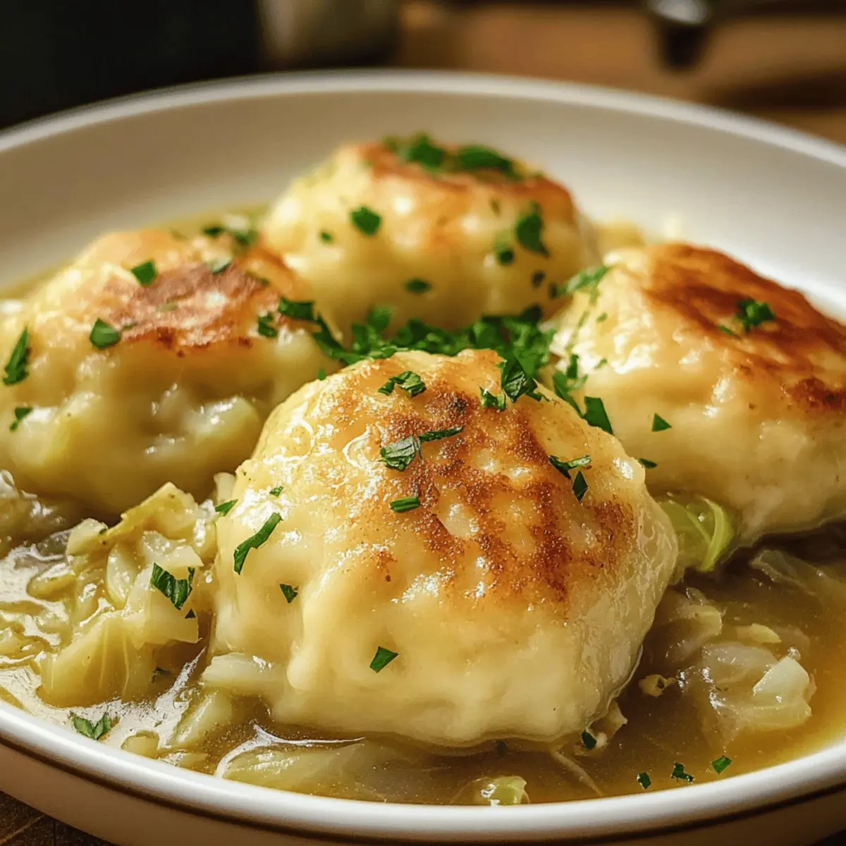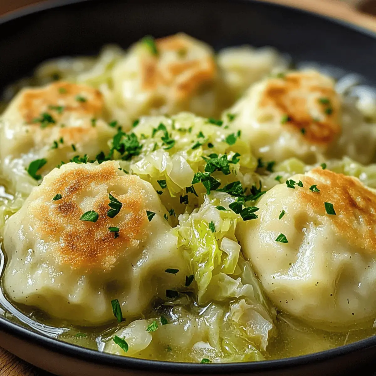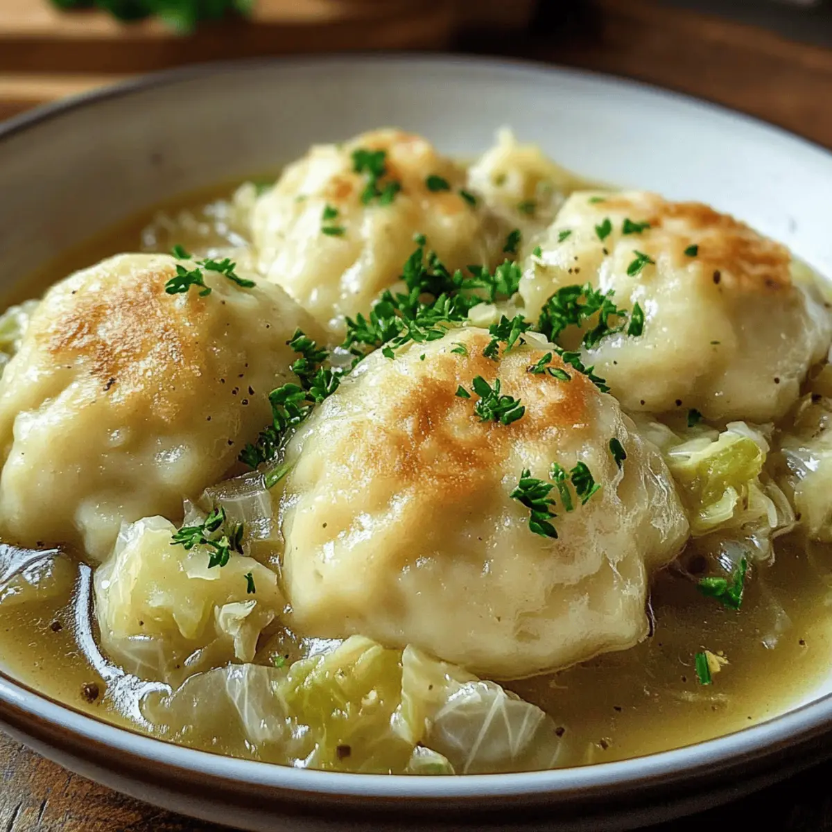 Dumplings aux herbes de chou réconfortants faits maison Posted on October 14, 2025October 14, 2025 by Juliette Mercier Sur une table rustique, un parfum envoûtant de chou mijote doucement, enveloppé d’herbes fraîches et de beurre savoureux. Comme un chaleureux câlin, ces Dumplings aux herbes de chou sont bien plus qu’un simple plat : ils incarnent le réconfort et la convivialité. En préparant ces délicieuses petites sphères végétariennes, vous apportez à votre cuisine une touche de tradition allemande, parfaite pour les soirées fraîches ou les repas en famille. En plus de leur préparation rapide, ces dumplings s’adaptent facilement à un régime sans gluten pour faire plaisir à tout le monde. Alors, êtes-vous prêts à savourer une expérience culinaire qui réchauffe le cœur et remplit l’âme ? Pourquoi ces dumplings vous séduiront-ils ? Simplicité éblouissante : La recette est facile à suivre et parfaite même pour les débutants en cuisine. Saveur unique : La combinaison de chou sucré et d’herbes fraîches crée une explosion de saveurs dans chaque bouchée. Confort inégalé : Ces dumplings sont comme un câlin dans un bol, idéaux pour les soirées d’hiver. Adaptabilité : Que vous soyez végétarien ou à la recherche d’une option sans gluten, cette recette s’adapte à vos besoins. Appréciation de tous : Parfaites pour les repas en famille, ces dumplings raviront à coup sûr les papilles de vos proches, transformant chaque repas en un moment mémorable. Ingrédients des Dumplings aux herbes de chou • Note : Voici tout ce dont vous aurez besoin pour préparer ces délicieux dumplings aux herbes de chou. Pour la pâte : Farine tout usage – Fournit la structure; vous pouvez la remplacer par un mélange de farine sans gluten pour une version sans gluten. Thym ou persil séché – Ajoute une saveur herbacée; doublez la quantité d’herbes fraîches si disponibles. Poivre noir moulu – Améliore la saveur; ajustez selon vos préférences. Sel fin – Essentiel pour équilibrer les saveurs; ne l’oubliez pas ! Bicarbonate de soude (optionnel) – Aide à la levée; utilisez-le en même temps que la poudre à lever pour une texture plus légère. Oeufs grands – Lient les ingrédients; utilisez des œufs à température ambiante pour un meilleur mélange. Lait entier – Aide à la consistance de la pâte; ajustez la quantité jusqu’à obtenue une pâte qui se tient sans être collante. Pour la garniture : Beurre non salé – Ajoute richesse et saveur; divisé pour faire sauter les oignons et enrober le chou. Grosse onion – Apporte douceur et profondeur lors de la cuisson; les échalotes fonctionnent aussi. Chou moyen – Ingrédient principal; fournit volume et texture; le chou vert ou de Savoie fonctionne. Bouillon de légumes ou de poulet – Ajoute de la profondeur de saveur; choisissez selon vos préférences diététiques. Poudre d’ail – Amplifie le profil de saveur; l’ail frais peut être une alternative. Pour l’assaisonnement : Sel casher et poivre noir – Pour ajustements de goût finaux. Persil frais (pour la garniture) – Apporte une touche de fraîcheur et une belle présentation; utilisez frais pour le meilleur goût. Instructions étape par étape pour les Dumplings aux herbes de chou Step 1 : Préparer la pâte Dans un grand bol, mélangez la farine tout usage, le thym séché ou le persil, le poivre noir et le sel fin. Si vous le souhaitez, incorporez la poudre à lever et le bicarbonate de soude pour une texture plus légère. Réalisez un puits au centre et incorporez les œufs battus, en mélangeant jusqu’à obtenir une pâte ferme. Ajoutez progressivement le lait entier jusqu’à ce que la pâte soit homogène mais pas collante. Step 2 : Former les dumplings Pendant que vous préparez la pâte, portez à ébullition une grande casserole d’eau salée. Avec vos mains légèrement farinées, prélevez des cuillerées de pâte et formez des petites boules de la taille d’une noix. Dès que l’eau bout doucement, déposez délicatement les dumplings dans l’eau, en les immergeant en petites quantités pour éviter la surcharge. Step 3 : Cuire les dumplings Laissez cuire les dumplings dans l’eau bouillante pendant environ 5 à 7 minutes, ou jusqu’à ce qu’ils flottent à la surface. Cela indique qu’ils sont cuits à point. Utilisez une écumoire pour les retirer délicatement de l’eau, en les laissant égoutter dans un plat pendant que vous terminez le reste de la recette. Step 4 : Sauter les oignons Dans une grande poêle, faites fondre environ la moitié du beurre à feu moyen. Ajoutez l’oignon haché avec une pincée de sel et faites-le cuire pendant 8 à 10 minutes, jusqu’à ce qu’il soit translucide et légèrement doré. Remuez de temps en temps pour assurer une cuisson uniforme et libérer les arômes. Step 5 : Ajouter le chou et assaisonner Ajoutez le reste du beurre dans la poêle, suivi du chou coupé en morceaux. Incorporez le bouillon de légumes ou de poulet, la poudre d’ail, et assaisonnez avec du sel et du poivre noir. Laissez mijoter à feu doux pendant environ 10-15 minutes, en remuant régulièrement, jusqu’à ce que le chou soit tendre et bien imprégné de saveurs. Step 6 : Incorporer les dumplings Une fois le chou tendre, incorporez délicatement les dumplings aux herbes de chou dans la poêle. Assurez-vous de bien les enrober de la sauce au chou. Ajustez le goût avec du sel et du poivre si nécessaire. Laissez mijoter encore quelques minutes pour bien réchauffer les dumplings avant de servir. Step 7 : Garnir et servir Pour finaliser votre plat, servez les dumplings dans des assiettes creuses et garnissez de persil frais haché pour une touche de couleur et de fraîcheur. Ces Dumplings aux herbes de chou réconfortants seront parfaits pour ravir vos convives, apportant une chaleur conviviale à chaque bouchée. Que servir avec les Dumplings aux herbes de chou 