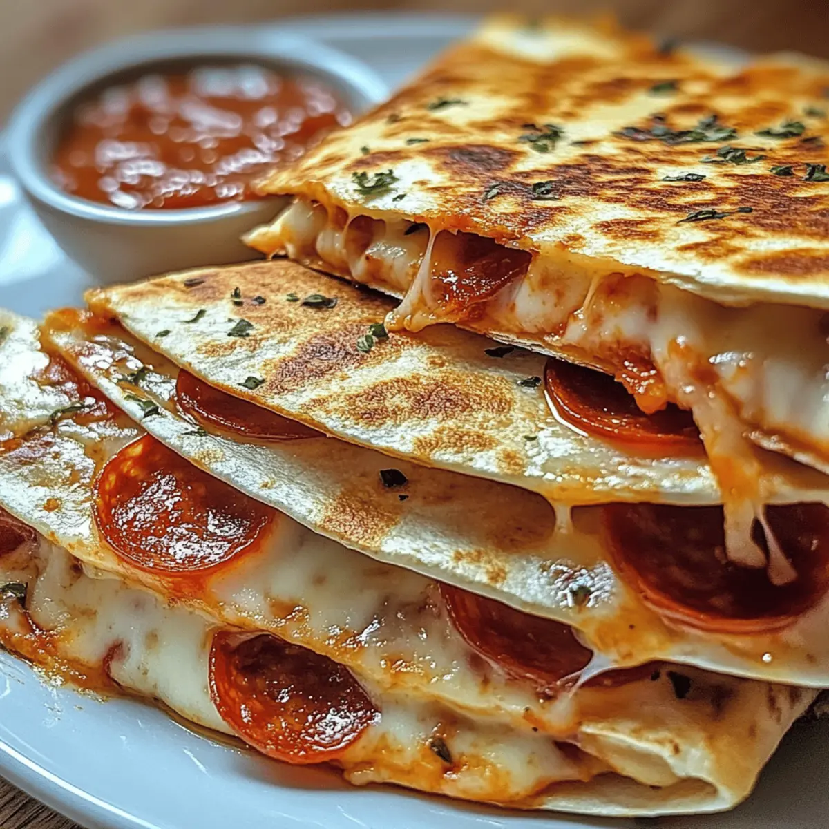 Quesadillas au pepperoni faciles et savoureuses Posted on October 14, 2025October 14, 2025 by Juliette Mercier À chaque fois que je me retrouve devant une soirée improvisée ou que mes enfants me supplient d’un en-cas réconfortant, je pense immédiatement aux quesadillas au pepperoni. Imaginez-vous, un mélange irrésistible de tortillas croustillantes et de mozzarella fondante, prêt en moins de 20 minutes ! Ces quesadillas sont absolument idéales pour un encas rapide après l’école ou pour nourrir une petite foule affamée. Mieux encore, elles sont super personnalisables : que vous préfériez les pepperonis classiques ou des options végétariennes remplies de légumes colorés, il existe une version pour chaque palais. Alors, prêt à transformer un simple dîner en un moment chaleureux et savoureux ? Pourquoi adorer ces quesadillas au pepperoni ? Simplicité incroyable : Avec seulement quelques ingrédients et moins de 20 minutes de préparation, ces quesadillas sont un jeu d’enfant à réaliser. Saveur irrésistible : La combinaison de mozzarella fondante et de pepperoni savoureux crée une expérience gustative qui ravit petits et grands. Personnalisable à souhait : Que vous soyez végétarien ou amateur de viande, il suffit de remplacer les ingrédients pour satisfaire toutes les préférences. Pensez à ajouter quelques légumes frais pour une touche colorée ! Snack idéal : Parfaites pour une collation après l’école ou un repas improvisé, elles plairont à coup sûr aux invités lors de vos soirées. Croustillant et fondant : L’extérieur est doré et croustillant, tandis que l’intérieur est rempli de délices fondants – une texture que tout le monde adore. Options de préparation à l’avance : Pour les journées chargées, préparez vos quesadillas à l’avance et conservez-les au réfrigérateur, prêtes à être cuites à tout moment. Ingrédients pour les Quesadillas au Pepperoni • Pour préparer vos délicieuses quesadillas au pepperoni, voici ce dont vous aurez besoin : Pour les tortillas Tortillas grandes (farine) – Servent de base pour la garniture ; vous pouvez opter pour des tortillas sans gluten si nécessaire. Pour la garniture Pepperoni de dinde – Ajoute une note savoureuse à vos quesadillas ; remplacez-le par du pepperoni végétal pour une option végétarienne. Fromage mozzarella râpé – Offre une texture fondante et crémeuse ; du cheddar ou du Monterey Jack sont de bonnes alternatives. Assaisonnement italien – Améliore le goût grâce à des herbes aromatiques ; personnalisez-le selon vos préférences. Poudre d’ail – Renforce la profondeur de saveur ; vous pouvez utiliser de l’ail frais pour un goût plus prononcé. Pour la cuisson Beurre ou huile d’olive – Utilisé pour frémir les quesadillas jusqu’à obtenir une texture croustillante ; l’huile d’olive est une option plus saine. Pour la sauce Sauce à pizza – Servie à l’intérieur des quesadillas ; idéale également comme sauce d’accompagnement. Instructions pour les Quesadillas au Pepperoni Step 1: Étaler la sauce Commencez par étaler une fine couche de sauce à pizza sur un côté de chaque tortilla. Assurez-vous que la sauce soit bien répartie pour donner du goût à chaque bouchée. Vous pouvez utiliser une spatule pour faciliter cette tâche. Cela devrait prendre environ 2 minutes au total. Step 2: Ajouter la garniture Sprinklez généreusement le fromage mozzarella râpé et les tranches de pepperoni de dinde sur chaque tortilla, directement sur la sauce. Veillez à bien couvrir la surface afin d’obtenir des quesadillas savoureuses. Cela devrait prendre environ 3 minutes. Step 3: Assaisonner et plier Saupoudrez les assaisonnements italiens et la poudre d’ail sur le fromage et les pepperonis. Cela ajoutera une profondeur de saveur délicieuse. Pliez chaque tortilla en deux pour enfermer la garniture. Cela devrait prendre 1 à 2 minutes. Step 4: Chauffer la poêle Faites chauffer une grande poêle à feu moyen et ajoutez une cuillère à soupe de beurre ou d’huile d’olive. Assurez-vous que la graisse est bien chaude avant d’ajouter les quesadillas; cela aidera à obtenir une texture croustillante. Cela prendra environ 2 minutes. Step 5: Cuire les quesadillas Placez délicatement les quesadillas pliées dans la poêle chaude. Faites-les cuire pendant 2 à 3 minutes de chaque côté, jusqu’à ce qu’elles soient dorées et croustillantes. Le fromage devrait commencer à fondre et à s’échapper légèrement des bords, indiquant que c’est presque prêt. Step 6: Retirer et couper Une fois dorées, retirez les quesadillas de la poêle et laissez-les refroidir légèrement. Utilisez un couteau bien aiguisé pour les couper en quartiers ou en triangles. Cette étape prend environ 1 minute. Step 7: Servir Servez vos quesadillas au pepperoni tièdes, accompagnées de sauce à pizza en supplément pour tremper, si désiré. Votre plat est maintenant prêt à être dégusté ! Préparer vos Quesadillas au Pepperoni à l’avance ! Ces quesadillas au pepperoni sont idéales pour les préparations anticipées ! Vous pouvez préparer les quesadillas non cuites jusqu’à 8 heures à l’avance et les conserver au réfrigérateur, bien enveloppées. Pour maintenir leur croustillant, assurez-vous de ne pas inclure de légumes trop aqueux sans les précuire au préalable pour éviter qu’ils n’empoisonnent la texture. Lorsque vous êtes prêt à déguster, chauffez simplement une poêle avec un peu de beurre ou d’huile d’olive, puis faites cuire les quesadillas environ 2-3 minutes de chaque côté jusqu’à ce qu’elles soient dorées et que le fromage soit fondu. Cela vous permettra de savourer un encas délicieux, fraîchement préparé, même lors des soirées chargées ! Que servir avec des quesadillas au pepperoni ? Ces quesadillas savoureuses et croustillantes se marient parfaitement avec une variété d’accompagnements