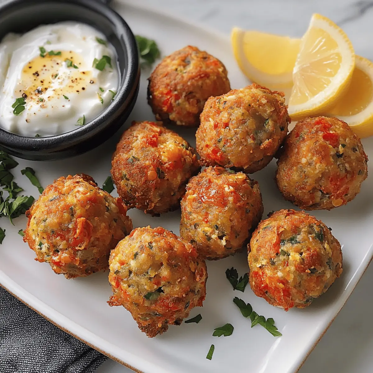 Boulettes de tomates grecques faciles à réaliser Posted on October 28, 2025October 28, 2025 by Juliette Mercier Alors que je fouillais dans mon panier rempli de tomates juteuses, une idée irrésistible s’est présentée à moi : préparer des boulettes de tomates grecques. Ces délicieuses petites bouchées, pleines de fraîcheur et d’arômes méditerranéens, sont non seulement faciles à réaliser, mais elles apportent également une touche de chaleur et de convivialité à toute table. En mélangeant des ingrédients simples tels que la feta crémeuse, la menthe fraîche et les herbes aromatiques, vous obtiendrez des boulettes croustillantes à l’extérieur et tendres à l’intérieur. Parfaites en apéritif ou en en-cas, elles peuvent être frites ou cuites à l’air pour une option plus saine. Qui peut résister à savourer ces petites merveilles avec une douce sauce au yaourt et un filet de citron ? Prêt à découvrir comment réaliser ces délices ? Pourquoi aimer ces boulettes de tomates ? Simplicité : La recette est d’une facilité déconcertante, parfaite même pour les cuisiniers débutants qui souhaitent impressionner leurs convives. Saveurs riches : Les arômes frais des herbes et la crémeux de la feta se combinent pour un goût exceptionnel qui ravira tous les palais. Polyvalence : Vous pouvez les servir chaudes en apéritif, les intégrer dans un plat principal ou les déguster froides. Option légère : En optant pour la cuisson à l’air, vous obtenez des boulettes croustillantes sans culpabilité. Attrait universel : Ces petites bouchées sont parfaites pour toutes les occasions, et vous pouvez même les personnaliser en ajoutant vos légumes préférés ou des épices comme le cumin ! Pour d’autres idées de recettes savoureuses, n’hésitez pas à consulter notre article sur les plats méditerranéens faciles. Ingrédients des boulettes de tomates grecques • Pour réaliser ces délicieuses boulettes, voici ce dont vous aurez besoin : Pour la préparation des boulettes Tomates hachées – Les tomates apportent une humidité essentielle et une saveur délicieuse ; veillez à retirer la chair aqueuse pour éviter les boulettes molles. Ciboule – Ajoute une note d’oignon douce ; vous pouvez utiliser des chives comme substitution. Feta – Offre une crémeux salé ; la chèvre est une bonne alternative si vous préférez un goût différent. Menthe fraîche – Apporte une touche herbacée rafraîchissante ; la menthe séchée peut être utilisée, mais la fraîche est préférable pour une saveur optimale. Persil frais – Rehausse la fraîcheur et la couleur ; remplacez-le par de la coriandre ou omettez-le selon vos goûts. Feuilles de basilic – Apportent une touche aromatique sucrée ; vous pouvez les substituer par du basilic séché en en utilisant moins à cause de sa concentration. Farine tout usage – Sert de liant pour façonner les boulettes ; optez pour une farine sans gluten pour une version sans gluten. Poudre à lever – Assure une texture légère en gouttes. Origan séché – Apporte une saveur méditerranéenne classique ; l’origan frais peut être utilisé pour un goût plus puissant. Sel casher – Renforce la saveur globale ; utilisez du sel de table mais réduisez la quantité. Poivre noir fraîchement moulu – Ajoute de la chaleur ; ajustez selon votre goût personnel. Huile pour la friture – Essentielle pour une texture croustillante ; l’huile de canola ou végétale est recommandée, mais l’huile d’olive peut fonctionner si vous aimez son goût. Pour la sauce Citron (sel de mer) et yaourt grec – Servis pour tremper, ajoutent de la fraîcheur et de la crémeux, parfaits avec vos boulettes de tomates grecques. Instructions pas à pas pour les boulettes de tomates grecques Step 1: Préparer les tomates Commencez par prendre vos tomates hachées, retirez les graines et la chair aqueuse pour éviter des boulettes trop molles. Ensuite, hachez-les finement et placez-les dans une passoire pour laisser s’égoutter pendant environ 15 minutes. Ce refroidissement va permettre de concentrer leur saveur et de garantir une texture parfaite pour vos boulettes de tomates grecques. Step 2: Mélanger les ingrédients frais Dans un grand bol, combinez les tomates égouttées avec les ciboules, la menthe fraîche, le persil et le basilic. Émiettez ensuite la feta et incorporez-la au mélange. Remuez bien jusqu’à ce que tous les ingrédients soient bien intégrés, créant ainsi une base savoureuse pour vos boulettes. Cela va infuser votre préparation avec toutes les herbes aromatiques qui caractérisent ces boulettes de tomates grecques. Step 3: Préparer le mélange sec Dans un autre récipient, mélangez la farine tout usage, la poudre à lever, l’origan, le sel et le poivre noir. Cette étape est cruciale, car elle permet de bien disperser les éléments secs. Une fois ce mélange homogène, incorporez-le progressivement à votre mélange de tomates, en pliant délicatement pour former une pâte souple. Si nécessaire, ajustez la quantité de farine pour obtenir la consistance désirée. Step 4: Réfrigérer le mélange Une fois la pâte prête, couvrez le bol avec un film plastique et placez-le au réfrigérateur pendant 20 à 30 minutes. Cette étape va aider à raffermir le mélange, facilitant ainsi la formation des boulettes lorsque vous serez prêt à les frire. Pendant ce temps, préparez votre espace de cuisson. Step 5: Chauffer l’huile pour la friture Dans une grande poêle profonde, chauffez environ 5 cm d’huile à feu moyen-élevé. Pour tester si l’huile est prête, plongez-y délicatement un petit morceau de pâte, elle doit remonter et commencer à frémir immédiatement. L’huile chaude est essentielle pour obtenir une belle croûte dorée sur vos boulettes de tomates grecques. Step 6: Former et frire les boulettes Avec une cuillère huilée, prélevez des portions de la pâte et formez des bo