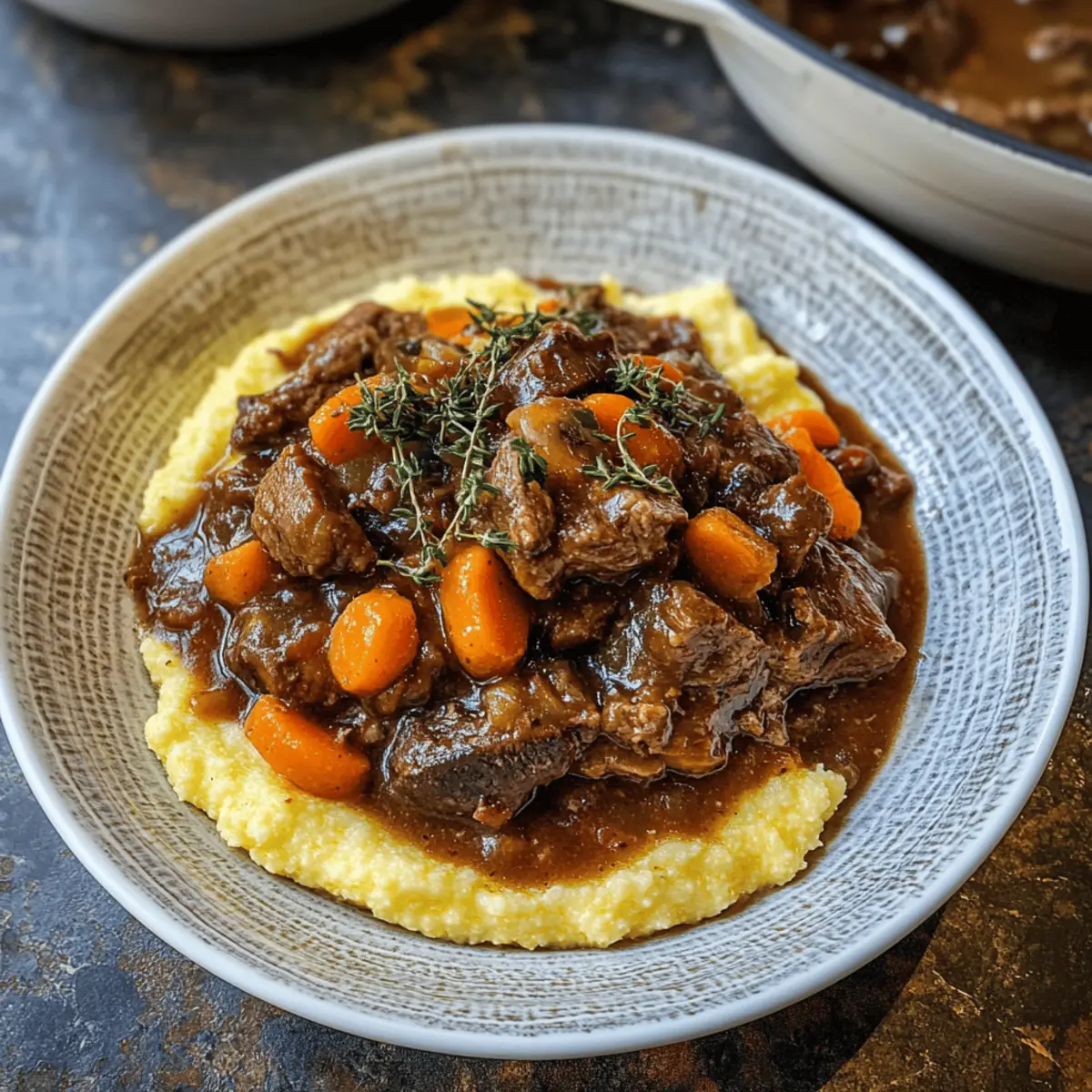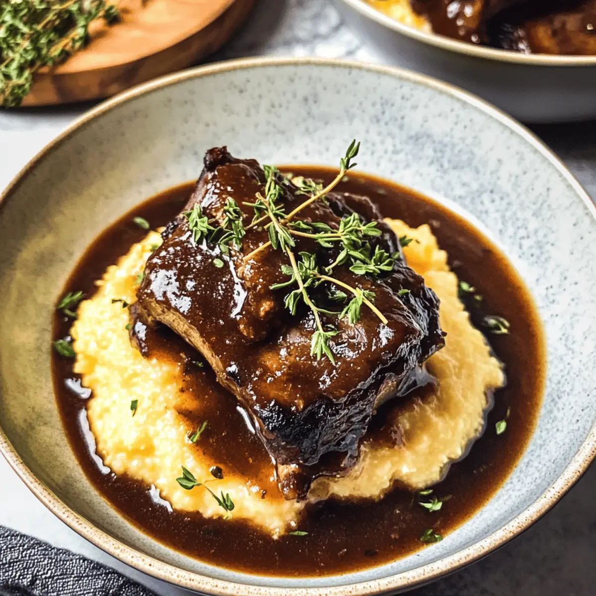Côtes de bœuf braisées au vin rouge réconfortantes Posted on October 23, 2025October 23, 2025 by Juliette Mercier Une odeur enivrante s’échappe de ma cuisine, me rappelant les dîners réconfortants partagés en famille. Les côtes de bœuf braisées au vin rouge sont bien plus qu’une simple recette; c’est une véritable étreinte à chaque bouchée. Ce plat réconfortant est idéal pour les réunions entre amis ou les soirées cocooning à la maison grâce à sa cuisson lente qui rend la viande tendre à souhait. En plus d’être un choix gourmet pour vos occasions spéciales, il est également sans gluten et propose une version sans produits laitiers pour accommoder tous vos invités. Alors, prêt à relèvement votre table avec cette délicieuse recette? Quelles accompagnements envisageriez-vous pour mettre en valeur cette merveille culinaire? Pourquoi vous adorerez cette recette? Simplicité incroyable : La préparation nécessite peu d’étapes, ce qui la rend accessible même aux cuisiniers débutants. Saveurs profondes : Chaque bouchée offre une explosion de goût, grâce à l’association divine de vin rouge et de viande fondante. Polyvalence : Que vous choisissiez des côtes de bœuf classiques ou des morceaux désossés, cette recette s’adapte à vos envies. De plus, vous pouvez personnaliser le plat en ajoutant des légumes comme des champignons ou des poivrons. Économie de temps : Laissez cuire ce plat longtemps pour des résultats dignes d’un restaurant, sans passer des heures en cuisine. Aplomb auprès des invités : Servez-le lors de vos dîners et impressionnez vos proches avec une œuvre culinaire réconfortante. Pour encore plus d’idées de plats délicieux, n’oubliez pas de consulter notre section sur les sides parfaits. Ingrédients pour les Côtes de bœuf braisées au vin rouge • Découvrez les ingrédients essentiels pour réaliser ce plat réconfortant. Pour la viande Côtes de bœuf (3-4 livres) – Optez pour des côtes avec os pour une saveur riche et une tendreté inégalée. Pour la marinade et la cuisson Huile d’olive – Parfaite pour saisir la viande et faire sauter les légumes; vous pouvez remplacer par de l’huile végétale. Cabernet Sauvignon (2 tasses) – Le liquide principal qui apporte une profondeur de goût; remplacez par du vin rouge sans alcool ou plus de bouillon de bœuf si nécessaire. Bouillon de bœuf (3 tasses) – Équilibre la sauce; passez à du bouillon de légumes pour une version plus légère. Pour les aromates Oignon (1 grand, en dés) – Ajoute une douceur aromatique; les échalotes conviennent également pour un goût plus subtil. Céleri (2 tiges, en dés) – Renforce la base de mirepoix; peut être omis si désiré. Carottes (2, en dés) – Apportent douceur et texture. Ail (3 gousses, écrasées) – Intensifie la saveur du plat. Pâte de tomate (2 cuillères à soupe) – Épaissit la sauce et lui ajoute un goût umami; pas de substitut direct, mais vous pouvez réduire un peu le bouillon. Feuilles de laurier (2) – Apportent des notes herbacées; substituez par du thym séché si besoin. Thym frais (1 brin) et origan (1 brin) – Pour une saveur aromatique; remplacez par 1 cuillère à café d’herbes séchées chacune si vous n’avez pas d’herbes fraîches. Préparez-vous à savourer des côtes de bœuf braisées au vin rouge qui vont régaler vos convives! Instructions étape par étape pour les Côtes de bœuf braisées au vin rouge Step 1: Préchauffez le four Préchauffez votre four à 180°C (350°F). Cette étape est cruciale car une température adéquate permettra une cuisson uniforme des côtes de bœuf. Pendant que le four chauffe, préparez les côtes en les rinçant et en les séchant soigneusement avec du papier absorbant. Step 2: Assaisonnez les côtes Saisissez les côtes de bœuf et assaisonnez-les généreusement avec du sel et du poivre. Assurez-vous de bien couvrir toutes les surfaces pour maximiser la saveur. Dans une grande cocotte en fonte de 6 litres, chauffez un filet d’huile d’olive à feu moyen-vif. Step 3: Faites dorer les côtes Lorsque l’huile est chaude, saisissez les côtes de bœuf en plusieurs fois, environ cinq à six minutes de chaque côté, jusqu’à ce qu’elles soient bien dorées. Elles doivent être croustillantes à l’extérieur. Une fois cuites, transférez-les sur une assiette et réservez. Step 4: Faites revenir les légumes Dans la même cocotte, ajoutez l’oignon en dés et faites-le cuire pendant 8 à 10 minutes, jusqu’à ce qu’il devienne translucide. Ensuite, incorporez le céleri et les carottes en dés, puis laissez cuire encore 3 à 5 minutes, jusqu’à ce qu’ils soient tendres. Step 5: Ajoutez l’ail et la pâte de tomate Incorporez l’ail écrasé et la pâte de tomate dans les légumes cuits. Faites cuire pendant quelques minutes jusqu’à ce que vous ressentiez les arômes. Ce mélange ajoutera une profondeur de goût aux côtes de bœuf braisées au vin rouge. Step 6: Déglacez avec le vin Versez le Cabernet Sauvignon dans la cocotte et portez le mélange à ébullition. Réduisez le feu et laissez mijoter pendant 15 à 20 minutes, jusqu’à ce que le liquide ait réduit de moitié. Vous obtiendrez ainsi une base riche pour la sauce. Step 7: Ajoutez le bouillon et les herbes Incorporez le bouillon de bœuf, les feuilles de laurier, le thym et l’origan dans la cocotte. Remettez les côtes de bœuf dans le mélange. Assurez-vous qu’elles sont bien immergées dans le liquide. Couvrez la cocotte avec son couvercle. Step 8: Enfournez pour une cuisson lente Transférez la cocotte au four et laissez cuire pendant 2,5 à 3 heures. Vérifiez la tendreté des côtes après 2 heures : elles doivent se défaire facilement à la fourchette. Cela garantit que la viande sera fondante et savoureuse. Step 9: Réchauffez la sauce Une fois les côtes cuites, retirez-les délicatement de la cocotte et couvrez-les avec du p