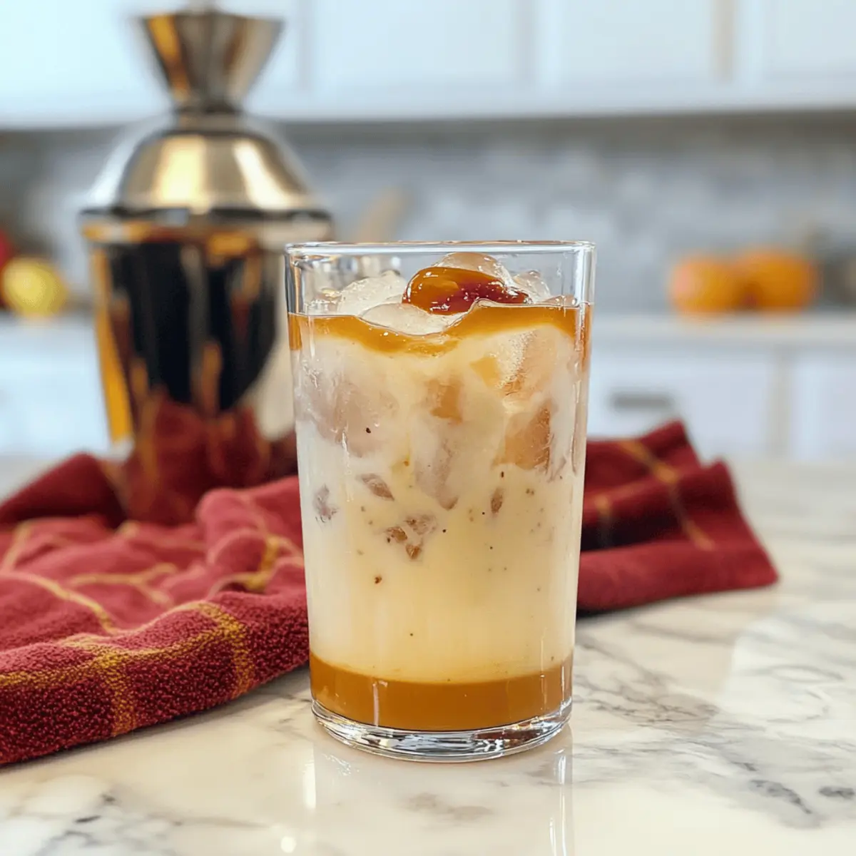 Cocktail de caramel à la pomme et au butterscotch irrésistible Posted on October 28, 2025October 28, 2025 by Juliette Mercier Lors d’une récente soirée d’automne, alors que les feuilles se teintaient de couleurs chaudes, je suis tombé sous le charme d’un Cocktail de caramel à la pomme et au butterscotch. Ce mélange envoûtant de caramel coulant et de notes de pomme épicées évoque des souvenirs chaleureux tout en offrant une touche moderne. Ce cocktail exquis n’est pas seulement un plaisir pour vos papilles ; il est également rapide à préparer et parfait pour éblouir vos invités lors de vos soirées ou pour se faire plaisir lors d’une soirée tranquille à la maison. Qui pourrait résister à une boisson aussi réconfortante et gourmande ? Restez avec moi et découvrez comment préparer cette délicieuse boisson qui rendra vos moments encore plus spéciaux ! Pourquoi adorer ce cocktail gourmand ? Créativité à votre portée : Ce cocktail de caramel à la pomme et au butterscotch est un véritable chef-d’œuvre à réaliser chez soi. Saveurs réconfortantes : La combinaison de caramel riche et de saveurs de pomme épicée évoque l’automne dans chaque gorgée. Préparation rapide : En un rien de temps, vous pouvez éblouir vos invités avec cet élixir sans effort. Polyvalent pour toutes les occasions : Idéal pour des célébrations, soirées ou même pour un moment détente à la maison, ce cocktail convient à toutes vos envies. Adaptable selon vos goûts : N’hésitez pas à expérimenter avec des vodkas aromatisées ou à créer une version sans alcool qui plaira à tous. Attractif et rassembleur : Un cocktail qui séduira vos amis et apportera chaleur et convivialité à vos rencontres. Ingrédients du Cocktail de caramel à la pomme et au butterscotch Préparez-vous à être émerveillé par la simplicité de cette recette délicieuse ! Pour le Cocktail • Sauce au Caramel – Ajoute douceur et saveur ; utilisez la version maison ou achetée en magasin, et chauffez-la pour la rendre plus fluide. • Glace – Apporte fraîcheur et un effet rafraîchissant ; remplissez généreusement le verre pour un cocktail glacé. • Vodka – Sert de base spiritueuse ; n’importe quelle marque fera l’affaire, mais une vodka aromatisée peut rehausser le goût. • Butterscotch Schnapps – Donne une saveur sucrée et beurrée ; indispensable pour le profil unique du cocktail. • Cidre de Pomme – Introduit un élément fruité et épicé ; utilisez du cidre de pomme frais pour un goût optimal. • Crème Vanillée – Ajoute de la crémeux et de la douceur ; remplacez par de la crème légère ou une alternative sans lait si désiré. Pour la Garniture • Tranche de Pomme – Idéale pour décorer le verre et apporte une touche de couleur. • Cannelle – Un soupçon pour saupoudrer sur le dessus ajoute une note épicée qui complète le cocktail. N’hésitez pas à explorer cette recette de cocktail de caramel à la pomme et au butterscotch et à l’adapter selon votre goût personnel ! Instructions pour le Cocktail de caramel à la pomme et au butterscotch Step 1: Chauffer la sauce au caramel Chauffez légèrement la sauce au caramel au micro-ondes pendant 10 à 15 secondes pour la rendre plus fluide. Cela facilitera le versement et donnera un aspect lustré à votre Cocktail de caramel à la pomme et au butterscotch. Assurez-vous qu’elle ne brûle pas, elle doit simplement être chaude au toucher. Step 2: Créer un décor de caramel Prenez un verre et faites une spirale de sauce au caramel à l’intérieur, en commençant par le fond et en remontant sur les côtés. Ce tourbillon de caramel doit être généreux afin d’avoir un bel effet visuel en plus du goût exquis que vous apportez à votre cocktail. Step 3: Remplir le verre de glace Remplissez le verre décoré de glace pilée ou de glaçons, selon votre préférence. Cela donne une bonne base pour garder votre cocktail frais et agréable à boire. Assurez-vous que le verre est plein pour maximiser la fraîcheur. Step 4: Préparer le mélange dans un shaker Dans un shaker à cocktail rempli de glace, ajoutez 60 ml de vodka et 30 ml de Butterscotch Schnapps. Utilisez un shaker bien fermé pour éviter les éclaboussures. Cela va ajouter de la profondeur et une touche sucrée à votre Cocktail de caramel à la pomme et au butterscotch. Step 5: Incorporer le cidre et la crème Ajoutez 90 ml de cidre de pomme et 60 ml de crème vanillée dans le shaker avec les autres ingrédients. Cela crée un mélange savoureux et crémeux qui complétera parfaitement le goût du caramel. Vous verrez le mélange prendre une consistance onctueuse à mesure que vous ajoutez ces ingrédients. Step 6: Mélanger vigoureusement Fermez bien le shaker et secouez vigoureusement pendant environ 15 secondes. Cela permet de bien mélanger tous les ingrédients et d’obtenir une belle émulsion. Lorsque vous retirez le shaker, il doit être frais au toucher, indiquant que le mélange est bien refroidi. Step 7: Verser dans le verre préparé Ouvrez le shaker et versez délicatement le mélange dans le verre décoré de caramel et rempli de glace. Laissez quelques coulées de caramel visible à l’extérieur pour un effet encore plus attrayant. Votre Cocktail de caramel à la pomme et au butterscotch est maintenant prêt à être dégusté. Conseils de stockage pour le cocktail de caramel à la pomme et au butterscotch Température ambiante : Ne conservez pas à température ambiante. Une fois préparé, le cocktail doit être dégusté immédiatement pour profiter de sa fraîcheur. Réfrigérateur : Si vous avez un mélange non servi, placez-le au réfrigérateur et consommez-le dans les 24 heures pour de meilleures saveurs. Congélateur : Évitez de congeler le cocktail. La texture crémeuse et les saveurs seront altérées après décongélation. Réchauffage : Ce cocktail n’est pas à réchauffer. Servez-le frais,