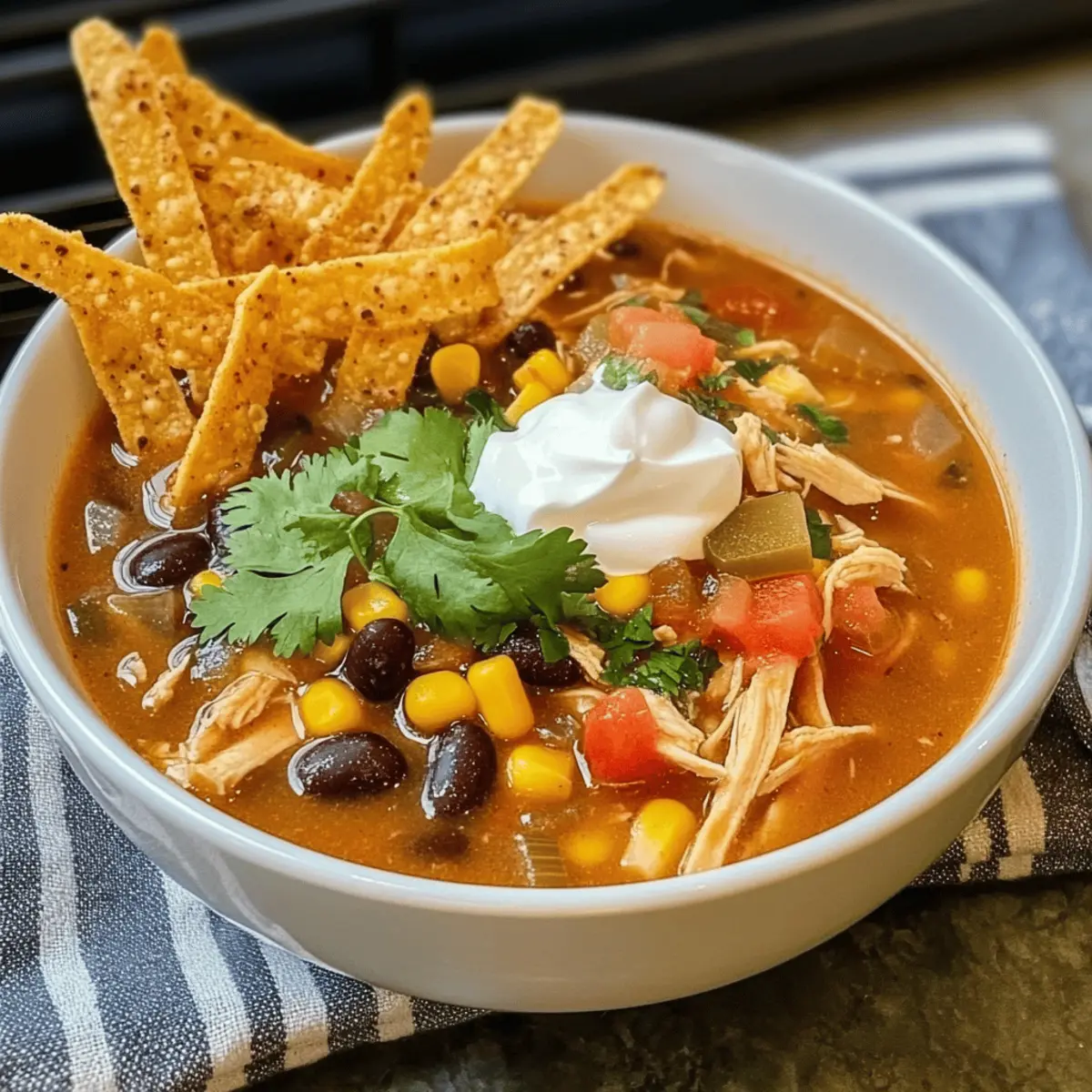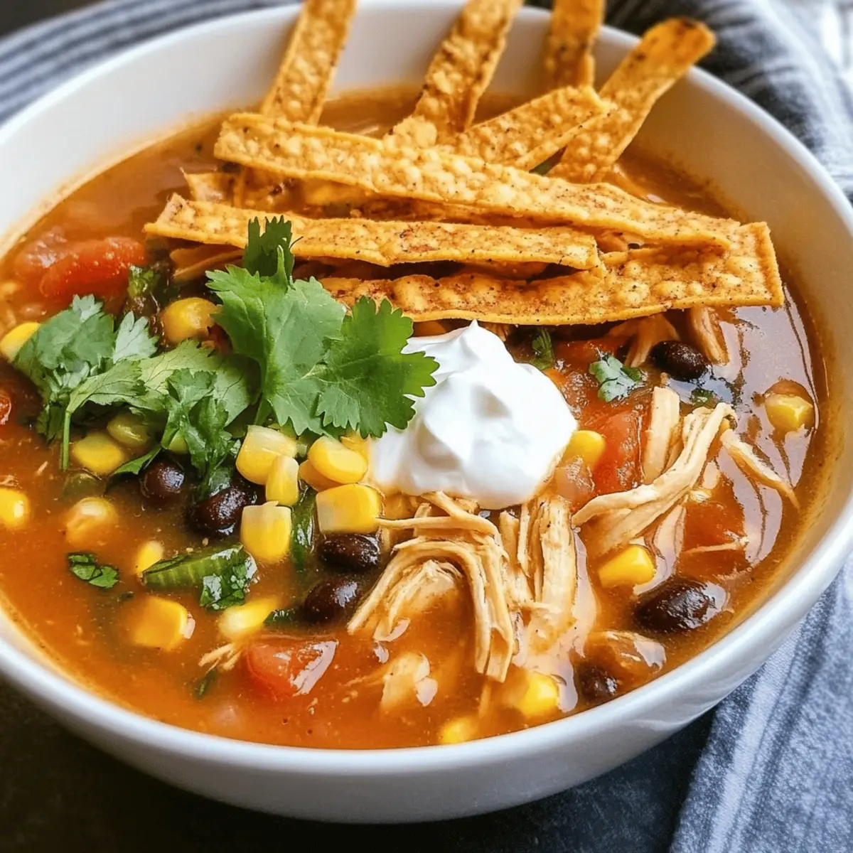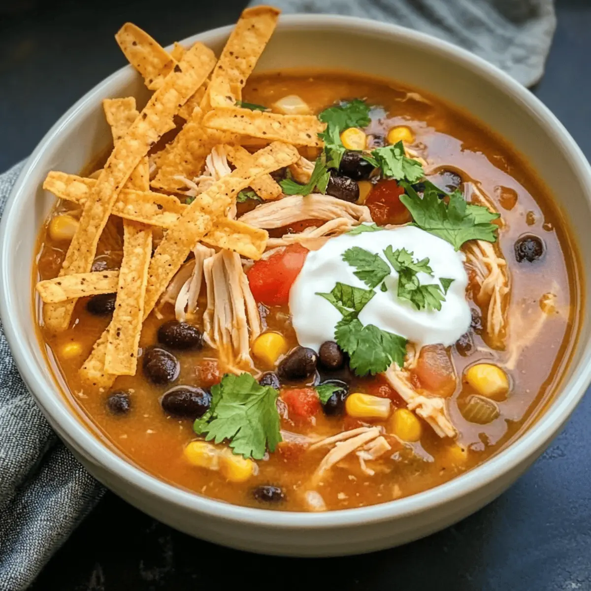 Soupe de tortilla au poulet réconfortante et rapide Posted on October 23, 2025October 23, 2025 by Juliette Mercier L’inspiration peut frapper à tout moment, et il y a quelque temps, en fouillant dans mon réfrigérateur, j’ai trouvé les ingrédients parfaits pour une Soupe de tortilla au poulet réconfortante. Ce plat incroyable allie tous les plaisirs d’un taco à la chaleur d’une soupe délicieuse. En plus d’être facile à préparer, il est également parfait pour les soirées chargées, car il se cuisine rapidement, que ce soit dans un autocuiseur ou sur la cuisinière. Imaginez savourer une cuillère fumante remplie de poulet tendre, de haricots noirs et de tomates juteuses, avec une touche croustillante de tortillas en garniture. Qui pourrait dire non à un plat qui ravira toute la famille ? Prêts à découvrir cette recette chaleureuse qui transformera vos dîners en moments conviviaux ? Pourquoi essayer cette Soupe de tortilla au poulet ? Simplicité inégalée : La préparation de cette soupe est un jeu d’enfant, que vous soyez novice en cuisine ou un chef averti. Saveurs riches et réconfortantes : Chaque cuillerée réunit des ingrédients de qualité, avec le goût audacieux des tomates et la douceur du poulet, créant un mélange irrésistible. Adaptabilité : Que vous choisissiez de la préparer dans un autocuiseur ou sur la cuisinière, cette recette s’ajuste à votre emploi du temps. N’oubliez pas de vérifier notre idée pour les variations qui permettent d’ajouter une touche personnelle à votre plat. Parfait pour toute la famille : En plus d’être savoureuse, elle est également nutritive, vous permettant de nourrir vos proches sans effort. Vous pouvez même la servir avec du pain de maïs mexicain pour une expérience complète ! Gagne-temps : Prête en un rien de temps, c’est le choix idéal pour vos soirs de semaine chargés. Ingrédients de la Soupe de tortilla au poulet • Une délicieux mélange pour un plat réconfortant. Pour le Bouillon Bouillon de poulet – Base de la soupe, apportant hydratation et saveur; pour une version végétarienne, remplacez par du bouillon de légumes. Ail émincé – Renforce les qualités aromatiques; préférez l’ail frais pour une saveur optimale. Oignon haché (optionnel) – Améliore le goût de base de la soupe; les échalotes ou les poireaux peuvent offrir un goût différent. Pour la Soupe Poulet cuit effiloché – Ajoute des protéines et une consistance gourmande; optez pour du poulet rôti pour gagner du temps. Tomates en dés – Contribue à l’acidité et à l’humidité; utilisez des tomates fraîches si vous le souhaitez. Maïs – Apporte douceur et texture; remplacez par du maïs congelé si le maïs en boîte n’est pas disponible. Haricots noirs – Introduit fibres et protéines; assurez-vous de bien les rincer avant de les ajouter. Piments verts en dés – Ajoute une légère chaleur et complexité; ajustez selon votre goût pour la douceur. Cumin moulu – Offre un goût terreux délicat; peut être remplacé par un mélange d’épices à tacos pour plus de punch. Poudre de chili – Introduit une note épicée douce; réduisez ou omettez pour un goût plus doux. Pour la Garniture (Optionnel) Tranches de tortillas de maïs – Apportent du croquant et de la texture; faites-les frémir avant de les ajouter à la soupe. Crème sure – Ajoute de la richesse et un contraste crémeux; idéale pour adoucir les saveurs. Fromage Monterey Jack – Fournit crémeux et fondant; un classique dans cette recette. Avocat – Ajoute une consistance onctueuse; un élément frais incontournable. Coriandre – Offre une touche de fraîcheur; ajout parfait pour une explosion de saveurs. N’hésitez pas à personnaliser ces ingrédients pour créer votre propre version de cette Soupe de tortilla au poulet réconfortante ! Instructions pour la Soupe de tortilla au poulet Step 1: Mélanger les ingrédients Dans votre autocuiseur ou une grande casserole, commencez par combiner le bouillon de poulet, le poulet cuit effiloché, les tomates en dés, le maïs, les haricots noirs, les piments verts, l’ail émincé et l’oignon haché (si utilisé). Assurez-vous que tous les ingrédients sont bien mélangés pour que chaque saveur se mêle harmonieusement. Step 2: Cuisson en autocuiseur Si vous utilisez un autocuiseur, réglez-le sur basse pression et laissez cuire pendant environ 8 heures. Pour une cuisson rapide, optez pour une haute pression durant 3 à 4 heures. Une fois le temps écoulé, passez un instant à vérifier les saveurs et ajustez si nécessaire avec du sel et du poivre selon votre goût. Step 3: Cuisson sur la cuisinière Pour la méthode traditionnelle, faites chauffer une grande casserole à feu moyen-doux. Ajoutez le mélange préparé et laissez mijoter pendant 20 à 30 minutes. Remuez de temps en temps pour éviter que la soupe n’accroche au fond, jusqu’à ce que tous les ingrédients soient bien chauds et que les saveurs se soient bien développées. Step 4: Préparer les garnitures Pendant que la soupe cuisine, préparez vos garnitures préférées. Faites frémir les tranches de tortillas de maïs dans une poêle avec un peu d’huile jusqu’à ce qu’elles soient dorées et croustillantes. Cela ajoutera un élément croquant à votre Soupe de tortilla au poulet. Step 5: Servir la soupe Une fois que la soupe est prête, répartissez-la délicatement dans des bols. Ajoutez une cuillerée de crème sure, parsemez de fromage Monterey Jack, et déposez les tranches de tortillas croustillantes sur le dessus. Vous pouvez également ajouter des morceaux d’avocat et de la coriandre pour rehausser les saveurs de votre plat réconfortant. Variations de la Soupe de tortilla au poulet Invitez votre créativité culinaire avec ces suggestions alléchantes pour personnaliser votre soupe, qui ravira tous les palais ! Sans gluten : Remplacez les tortillas de maïs par des chips de