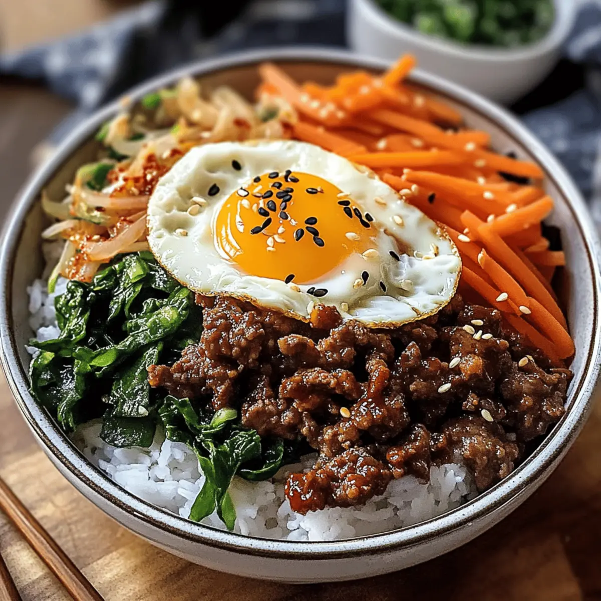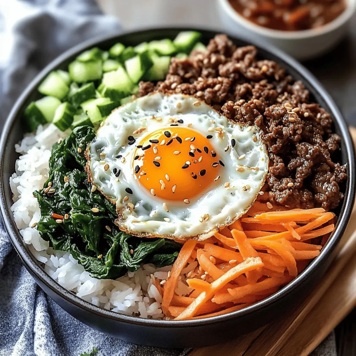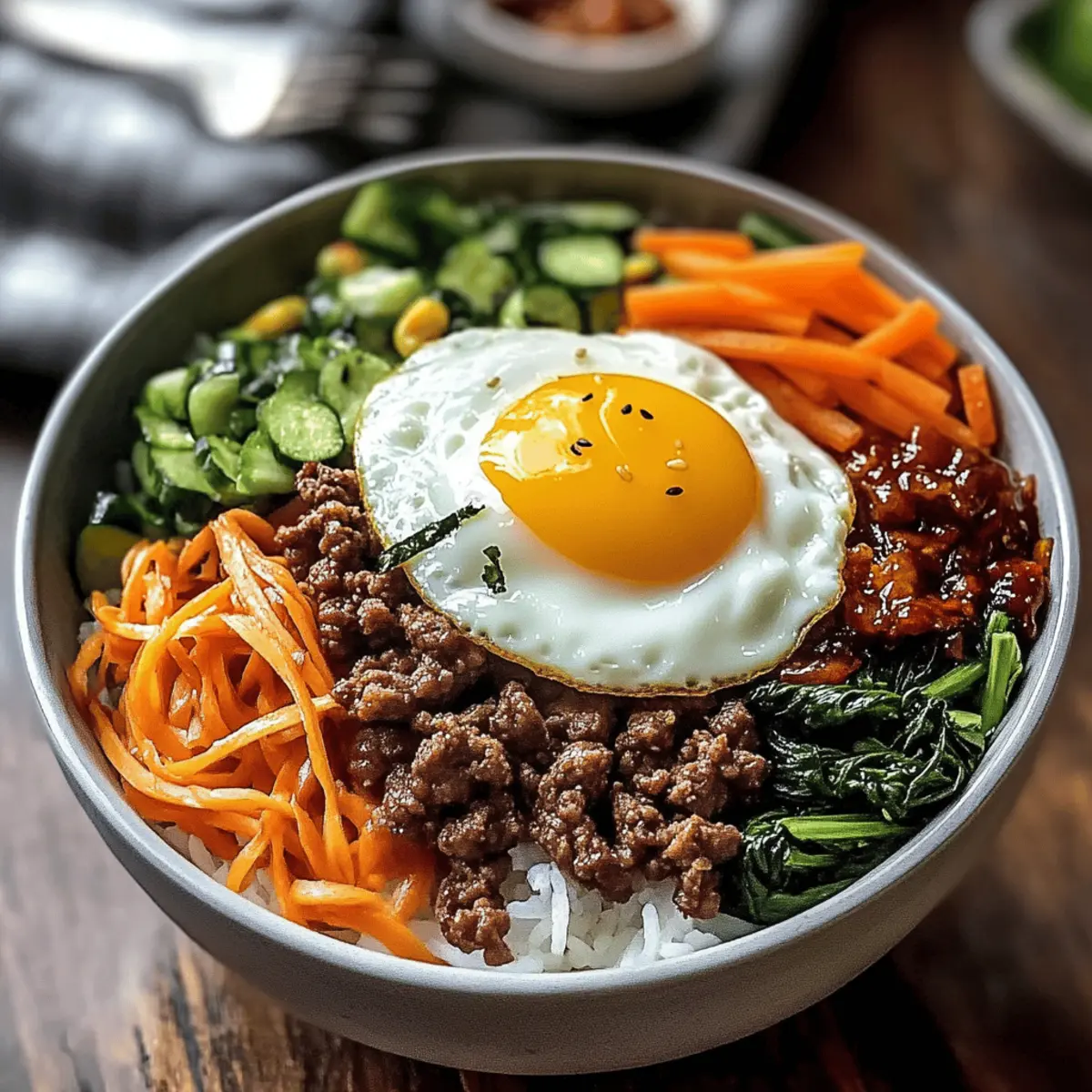 Bol de Bibimbap au Boeuf Coréen Maison Posted on October 22, 2025October 22, 2025 by Juliette Mercier Alors que je me plongeais dans les saveurs envoûtantes de la cuisine coréenne, j’ai découvert le Bol de Bibimbap au Boeuf Coréen, un plat qui me fait fondre à chaque bouchée. Imaginez un mélange harmonieux de viande de boeuf marinée, de légumes frais croquants et d’un œuf au plat parfaitement doré, le tout reposant sur un lit de riz moelleux. Cette recette vibrant de couleurs est non seulement un régal pour les yeux, mais elle se prépare rapidement, ce qui en fait une option idéale pour un dîner en semaine ou une belle présentation pour vos amis lors d’une soirée. Et ne vous inquiétez pas, cette version peut facilement être adaptée pour devenir végétarienne avec un simple échange de tofu ! Êtes-vous prêt à ajouter une touche de créativité à votre table avec ce classique coréen ? Pourquoi le Bol de Bibimbap au Boeuf Coréen ? Richesse des saveurs : Chaque bouchée est une explosion de goûts grâce à la marinade savoureuse du boeuf et à la sauce gochujang qui réveille les papilles. Facilité de préparation : En moins de 30 minutes, vous pouvez concocter ce plat délicieux, parfait pour un repas rapide après une longue journée. Personnalisation : Adaptable à vos envies, vous pouvez substituer le boeuf par du tofu ou des légumes variés pour une version végétarienne irrésistible. Plats colorés : Le contraste entre les couleurs vives des légumes et le jaune doré de l’œuf crée une présentation impressionnante qui impressionnera vos invités. Équilibre nutritionnel : Avec environ 610 calories par portion, ce plat vous offre un repas équilibré rempli de protéines, de glucides et de bons gras. Ajoutez un accompagnement de kimchi pour une authenticité supplémentaire, ou découvrez d’autres idées de recettes dans notre section dédiée aux recettes coréennes. Ingrédients du Bol de Bibimbap au Boeuf Coréen • Découvrez les éléments essentiels pour préparer ce plat coréen irrésistible ! Pour la viande : Viande de boeuf hachée maigre – Apporte une saveur savoureuse et une source de protéines ; vous pouvez substituer par de la dinde hachée pour une option plus légère. Pour le riz : Riz blanc à grains courts – Sert de base copieuse avec une texture collante ; évitez le riz à grains longs pour de meilleurs résultats, et optez pour du riz brun pour une version plus saine. Pour les légumes : Carottes (juliennes) – Ajoute une douceur et un croquant ; les poivrons peuvent être utilisés pour une touche de couleur et de saveur différentes. Épinards (frais) – Contribue à la nutrition et à la fraîcheur ; le chou frisé ou le bok choy peuvent également remplacer les épinards. Courgettes (tranchées) – Apporte de l’humidité et une saveur douce ; les concombres peuvent remplacer pour une touche plus fraîche. Germes de soja – Offre une texture croquante ; remplacez par du chou râpé si nécessaire. Pour la sauce : Sauce gochujang – Fournit chaleur et profondeur ; ajustez la quantité selon votre préférence de piquant, ou remplacez par de la sriracha. Huile de sésame – Ajoute un arôme et une saveur de noisette ; l’huile d’olive peut être utilisée en dépannage, bien que le goût soit différent. Sauce soja faible en sodium – Renforce l’umami du plat ; le tamari peut être utilisé pour une option sans gluten. Pour la garniture : Œufs – Servent de garniture riche avec un jaune coulant ; optez pour des œufs pochés pour une présentation alternative. Émerveillez-vous avec ce Bol de Bibimbap au Boeuf Coréen qui est non seulement délicieux, mais aussi adaptable à votre goût ! Instructions pour le Bol de Bibimbap au Boeuf Coréen Step 1: Cuire le riz Commencez par préparer le riz blanc à grains courts selon les instructions du paquet, généralement pendant environ 20 minutes. Assurez-vous que le riz soit bien moelleux et collant, idéal pour le Bol de Bibimbap au Boeuf Coréen. Une fois cuit, retirez-le du feu et laissez-le refroidir légèrement pendant que vous préparez les autres ingrédients. Step 2: Cuire le boeuf Dans une poêle à feu moyen-élevé, faites dorer la viande de boeuf hachée maigre, environ 5 à 7 minutes, jusqu’à ce qu’elle ne soit plus rosée. Utilisez une spatule pour briser la viande en morceaux. Une fois cuite, égouttez l’excès de graisse pour obtenir une viande savoureuse et légèrement croustillante, prête à être assaisonnée. Step 3: Ajouter de la saveur Incorporez la sauce gochujang, la sauce soja et l’huile de sésame dans la viande de boeuf cuite. Mélangez bien et laissez mijoter à feu doux pendant 5 minutes. Cette étape est cruciale pour infuser le boeuf avec des saveurs riches et piquantes, qui sont la clé du Bol de Bibimbap au Boeuf Coréen. Step 4: Sauter les légumes Dans une poêle séparée, chauffez un peu d’huile de sésame à feu moyen. Ajoutez les carottes juliennes, les épinards frais, les courgettes tranchées et les germes de soja, et faites sauter pendant environ 7 minutes, jusqu’à ce qu’ils soient bien tendres mais encore croquants. Cette étape ajoute de la couleur et de la fraîcheur à votre plat. Step 5: Frire les œufs Dans une autre poêle antiadhésive, faites chauffer à feu moyen et ajoutez un peu d’huile si nécessaire. Cassez les œufs et faites-les frire à feu doux pendant environ 3 minutes, jusqu’à ce que les blancs soient bien cuits et les jaunes encore coulants. Ces œufs au plat apportent une texture merveilleuse au Bol de Bibimbap au Boeuf Coréen. Step 6: Assembler les bols Dans chaque bol, déposez une portion de riz en premier. Ajoutez un bon mélange de boeuf ravi, puis disposez les légumes sautés harmonieusement sur le dessus. Enfin, déposez un œuf au plat sur chaque bol, en ajoutant un filet supplémentaire de sauce gochujang si vous le souhaitez. Votre Bol de Bibimbap au Boe