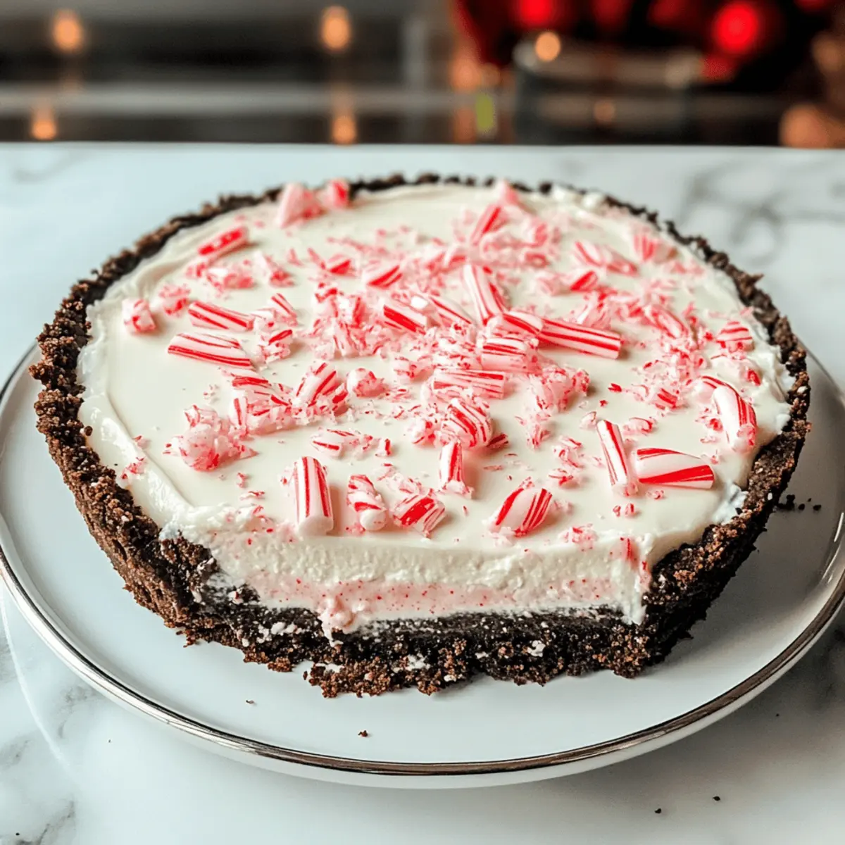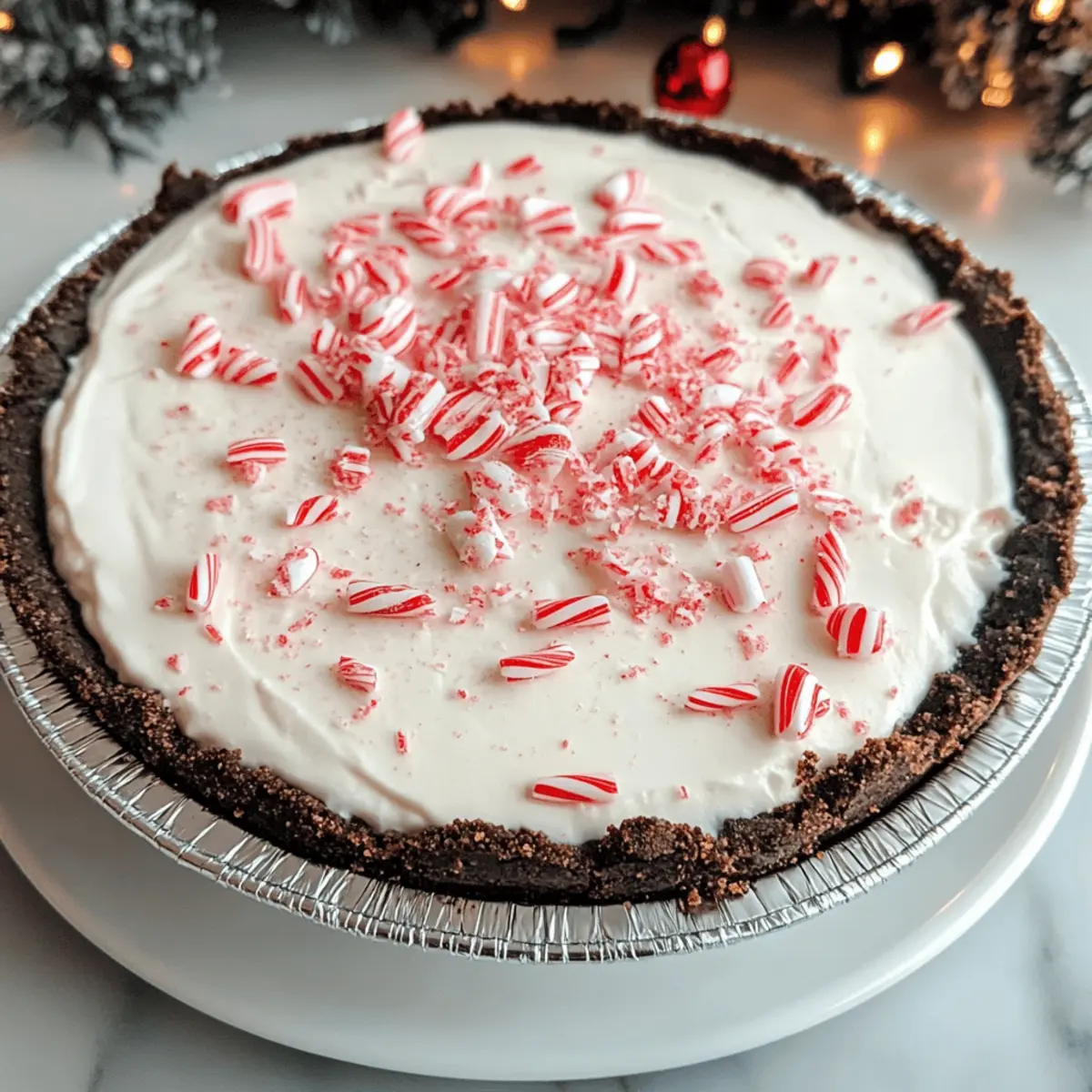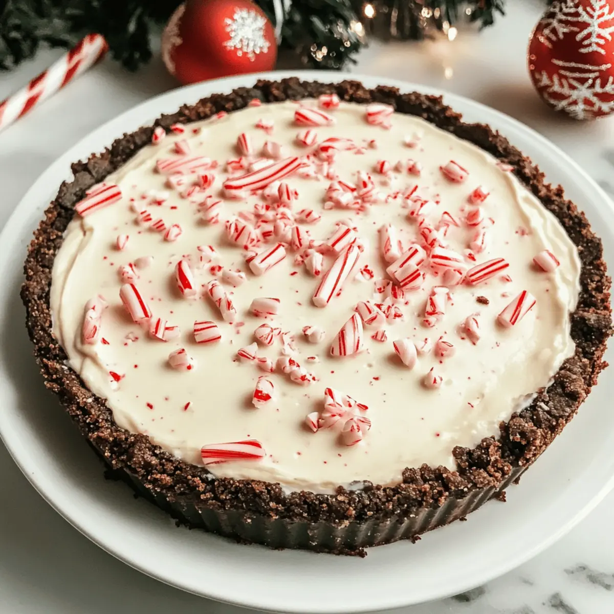Jump to Recipe Print RecipeEn feuilletant les pages d’un livre de recettes anciennes, une image m’a captivée : celle d’une tarte à la menthe poivrée de Noël sans cuisson, resplendissante de couleurs festives et promettant un doux réconfort. Cette délicieuse création, avec son mariage parfait de crème onctueuse et de menthe rafraîchissante, repose sur un fond de biscuits chocolatés qui ravira les papilles des petits comme des grands. Ce dessert rapide et à préparer à l’avance est l’ajout idéal pour vos réunions de fêtes, tout en étant un véritable régal visuel qui fera briller les yeux de tous vos invités. Prêt à vous lancer dans cette aventure culinaire qui fera sensation lors de vos repas de Noël ? Pourquoi choisir cette tarte festive ? Simplicité : Avec seulement quelques ingrédients, cette tarte se prépare en un rien de temps, parfaite même pour les pâtissiers débutants. Saveurs rafraîchissantes : La combinaison de crème onctueuse et de menthe poivrée crée une explosion de saveurs festives qui éveille les sens. Gagnez du temps : Préparez-la à l’avance et profitez du temps libre lors de votre fête sans stress. Attrait visuel : Avec ses couleurs vives et sa garniture croustillante, cette tarte est un véritable spectacle sur votre table. Polyvalente : Personnalisez cette recette en changeant les biscuits du fond ou en ajoutant une touche de chocolat pour plaire à tous. Pour d’autres idées de desserts de fête, n’hésitez pas à explorer notre section des recettes de Noël. Ingrédients de la Tarte à la menthe poivrée de Noël sans cuisson • Pour réaliser cette délicieuse tarte, voici les ingrédients essentiels. Pour la garniture : Fromage à la crème – apporte une base riche et crémeuse pour la garniture. Note : Utilisez du fromage à la crème entier pour la meilleure texture. Crème épaisse – ajoute légèreté et volume ; fouettez jusqu’à obtenir des pics fermes pour la consistance idéale. Sucre en poudre – sucrera la garniture et contribuera à sa texture lisse. Extrait de vanille – rehausse le profil de saveur de la tarte. Extrait de menthe poivrée – délivre la saveur emblématique de menthe poivrée. Utilisez-le avec parcimonie et ajustez selon votre goût. Colorant alimentaire – facultatif pour l’aspect visuel ; optez pour du rouge ou du vert pour une touche festive. Bonbons à la menthe (pour garnir) – ajoute du croquant et une décoration visuelle ; écrasez légèrement pour le topping. Pour la croûte : Croûte de biscuits au chocolat – fournit la base. Elle peut être achetée en magasin ou faite maison. N’attendez plus et réunissez ces ingrédients pour créer votre propre Tarte à la menthe poivrée de Noël sans cuisson, un dessert incontournable pour illuminer vos fêtes ! Instructions pour la Tarte à la menthe poivrée de Noël sans cuisson Step 1 : Préparer la crème épaisse Dans un grand bol, fouettez la crème épaisse à l’aide d’un batteur électrique jusqu’à obtenir des pics fermes, ce qui devrait prendre environ 3 à 5 minutes. Veillez à ne pas trop fouetter pour éviter une texture granuleuse. Une fois prête, mettez de côté cette crème légère, qui apportera de la douceur à votre tarte à la menthe poivrée de Noël sans cuisson. Step 2 : Préparer la garniture au fromage à la crème Dans un autre bol de taille moyenne, battez le fromage à la crème avec le sucre en poudre à l’aide d’un fouet jusqu’à obtenir un mélange lisse et crémeux, environ 2 à 3 minutes. Ajoutez l’extrait de vanille et l’extrait de menthe poivrée, en mélangeant jusqu’à ce que tout soit bien incorporé. Ce mélange deviendra la base douce et savoureuse de votre tarte. Step 3 : Colorer le mélange Si vous souhaitez ajouter une touche festive à votre tarte, incorporez quelques gouttes de colorant alimentaire dans la garniture au fromage à la crème. Mélangez délicatement jusqu’à obtenir la couleur désirée, que ce soit un vert éclatant ou un rouge joyeux. Cette étape ajoutera une belle présentation visuelle à votre Tarte à la menthe poivrée de Noël sans cuisson. Step 4 : Incorporer les bonbons à la menthe Une fois votre mélange coloré prêt, ajoutez les bonbons à la menthe écrasés, en les incorporant délicatement à l’aide d’une spatule. Faites attention à ne pas trop mélanger afin de préserver le croquant des bonbons. Cela ajoutera une délicieuse texture à votre garniture tout en renforçant la saveur de la menthe poivrée. Step 5 : Combiner les mélanges À l’aide d’un fouet, incorporez délicatement la crème épaisse fouettée à votre mélange de fromage à la crème. Travaillez à basse vitesse pour éviter de faire tomber la crème. Cette étape est essentielle pour obtenir une consistance légère et aérée, parfaite pour la Tarte à la menthe poivrée de Noël sans cuisson qui ravira tous vos invités. Step 6 : Assembler la tarte Prenez votre croûte de biscuits au chocolat et versez-y le mélange de garniture de manière égale. Utilisez une spatule pour lisser le dessus et assurer une belle finition. Une fois l’assemblage terminé, placez la tarte au réfrigérateur pour qu’elle prenne bien, cela permettra aux saveurs de se mélanger. Step 7 : Garnir et réfrigérer Avant de servir, étalez une couche de Cool Whip sur le dessus de votre tarte à la menthe poivrée. Parsemez de bonbons à la menthe écrasés pour une finition festive. Réfrigérez la tarte pendant au moins 2 à 4 heures, mais idéalement toute la nuit, afin d’assurer une texture parfaite et bien fermée avant de la déguster. Que servir avec la Tarte à la menthe poivrée de Noël sans cuisson ? Rassembler la famille autour d’une table festive est un moment magique, et l’accompagnement de ce dessert éclatant peut en faire toute la différence. Crème fouettée légère : Elle ajoute une touche aérienne et crémeuse qui se marie parfaitement 