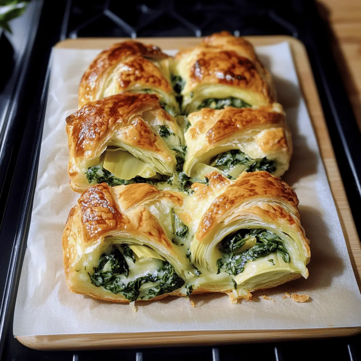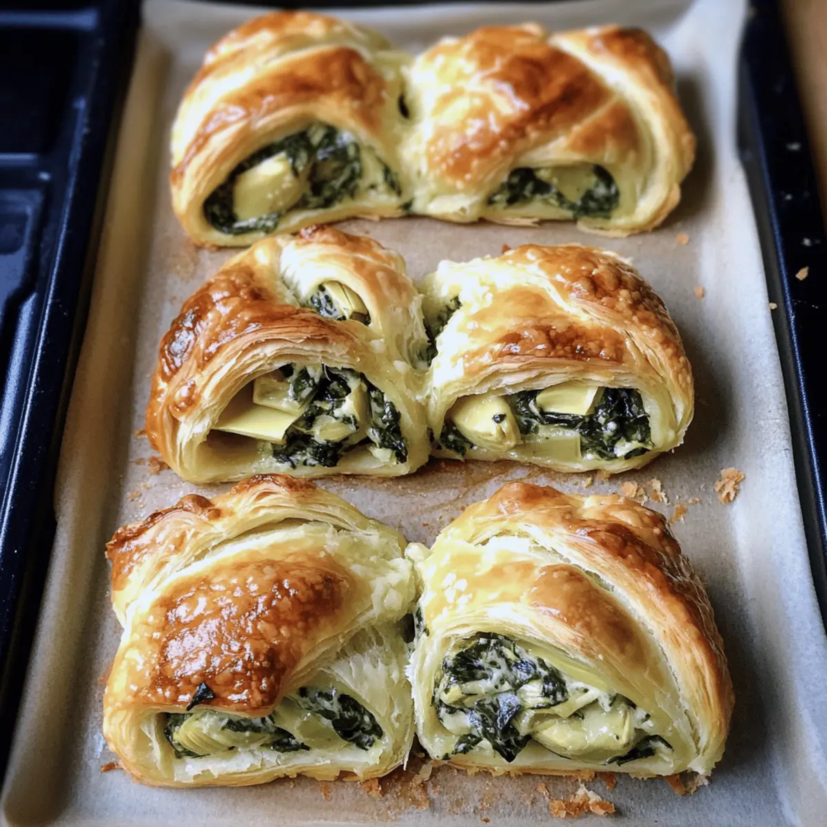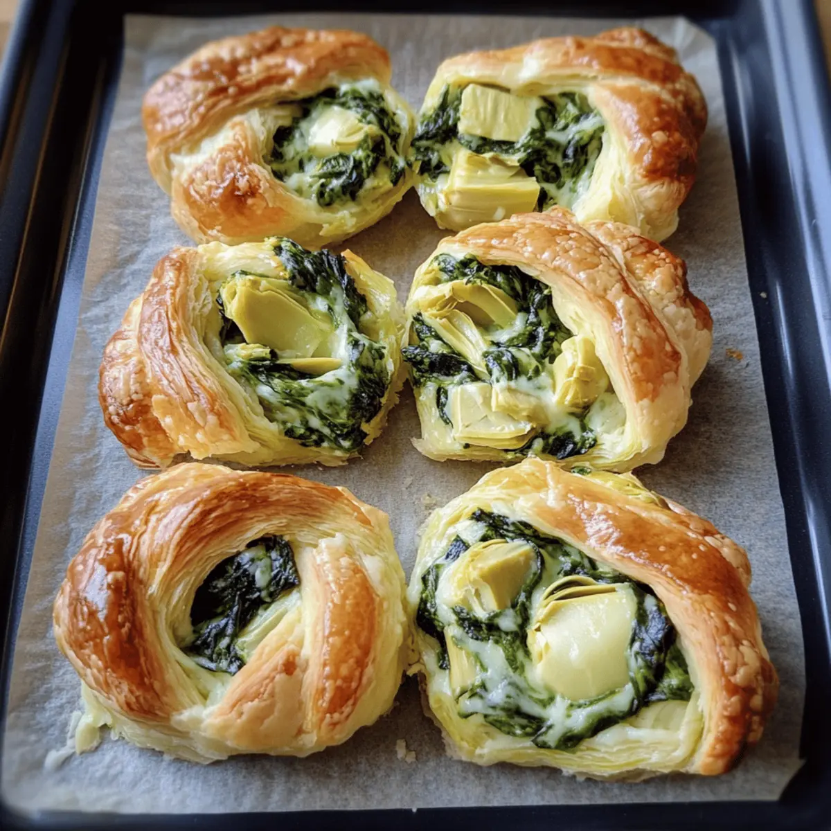 Jump to Recipe Print RecipeEn feuilletant un ancien livre de cuisine, je suis tombé sur une recette que j’avais presque oubliée : les tourbillons d’épinards et d’artichauts. Il y a quelque chose de si réconfortant dans l’idée de ces délicieuses bouchées en pâte feuilletée, où la richesse crémeuse des épinards et le goût piquant des artichauts se marient à la perfection. Parfaits pour un brunch entre amis ou en tant qu’apéritif festif, ces petits chefs-d’œuvre culinaires sont non seulement faciles à préparer, mais aussi incroyablement savoureux. En plus d’être un régal pour les yeux, ils apportent une touche de sophistication à n’importe quelle table. Alors, êtes-vous prêts à les réaliser et à épater vos convives ? Pourquoi vous adorerez ces tourbillons ? Simplicité : La préparation est un jeu d’enfant, requérant peu d’expérience culinaire pour un résultat impressionnant. Saveur intense : L’alliance parfaite des épinards crémeux et des artichauts piquants ravira vos papilles. Idéals pour toutes occasions : Que ce soit pour un brunch entre amis ou une fête, ces bouchées s’adaptent à toutes les tables. Flexibilité : Variez les fromages et les herbes pour personnaliser vos tourbillons selon vos envies, comme avec notre recette d’artichauts à la parmesan. Pratiques : Préparez-les à l’avance et enfournez le jour J pour une texture optimale. Les invités en redemanderont, surtout lorsqu’ils sont accompagnés d’une légère salade pour équilibrer les saveurs. Ingrédients pour les Tourbillons d’Épinards et d’Artichauts • Préparez-vous à savourer ces tourbillons d’épinards et d’artichauts savoureux, un véritable régal pour les sens ! Pour la Pâte Pâte Feuilletée – Garantit une texture légère et croustillante; utilisez du frais ou du surgelé, en veillant à bien le décongeler avant utilisation. Pour la Garniture Épinards Frais (1 tasse, hachés) – Ajoute une belle couleur ainsi que des nutriments; vous pouvez opter pour des épinards surgelés, en les décongelant et en égouttant l’excès d’eau. Artichauts (1/4 tasse, hachés) – Apporte une note légèrement acidulée; choisissez des artichauts en conserve ou en bocal, en évitant ceux marinés. Fromage Parmesan Râpé (1/4 tasse) – Offre une saveur riche et envoûtante; remplacez par du pecorino pour une touche plus forte. Fromage à Tartiner (1/8 tasse, ramolli) – Ajoute onctuosité à la garniture; le mascarpone est une alternative légère. Mayonnaise (1/4 tasse) – Améliore l’humidité et la saveur; le yaourt grec peut être une substitution plus saine. Gousse d’Ail (1, émincée) – Introduit une profondeur aromatique; privilégiez l’ail frais, bien que la poudre d’ail soit utile en dépannage. Sel, Poivre Frais Concassé et Flocons de Piment Rouge – Ajustez selon vos préférences; n’hésitez pas à rehausser les saveurs avec les épices de votre choix. Œuf (1, pour la dorure) – Donne aux tourbillons une belle finition dorée et brillante avant la cuisson. Ces ingrédients combinés donneront naissance à des tourbillons d’épinards et d’artichauts irrésistibles qui séduiront tous vos invités ! Instructions pour les Tourbillons d’épinards et d’artichauts Step 1: Préchauffage du four Préchauffez votre four à 200°C (400°F) pour garantir une cuisson optimale. Pendant que le four chauffe, sortez la pâte feuilletée du congélateur et laissez-la décongeler à température ambiante. Veillez à ce qu’elle soit bien souple pour pouvoir l’étaler facilement. Step 2: Préparation de la garniture Dans un grand bol, mélangez les épinards frais hachés, les artichauts, le fromage parmesan, le fromage à tartiner, la mayonnaise, l’ail émincé, ainsi que le sel, le poivre et les flocons de piment rouge. Remuez jusqu’à obtenir un mélange homogène et crémeux qui formera la garniture savoureuse des tourbillons d’épinards et d’artichauts. Step 3: Montage des tourbillons Découpez la pâte feuilletée en deux parties égales. Étalez la moitié de la garniture d’épinards et d’artichauts sur une des moitiés de la pâte, en laissant une petite marge sur les bords. Recouvrez avec la seconde moitié de pâte pour former un « sandwich » de garniture. Step 4: Découpe et façonnage Utilisez un couteau bien aiguisé pour couper le « sandwich » de pâte feuilletée en six longues bandes. Prenez chaque bande et enroulez-la pour former un tourbillon, en veillant à bien tordre chaque morceau et à replier les extrémités pour éviter que la garniture ne s’échappe pendant la cuisson. Step 5: Dorure et préparation à la cuisson Dans un petit bol, battez l’œuf pour réaliser une dorure. À l’aide d’un pinceau, appliquez l’œuf battu sur le dessus de chaque tourbillon pour obtenir une belle finition dorée et brillante après la cuisson. Disposez les tourbillons sur une plaque de cuisson recouverte de papier sulfurisé. Step 6: Cuisson des tourbillons Enfournez les tourbillons d’épinards et d’artichauts pendant environ 25 minutes, ou jusqu’à ce qu’ils soient bien dorés et que la pâte soit croustillante. Surveillez bien leur cuisson, car chaque four est différent; ils doivent avoir une belle couleur dorée et sentir délicieusement bon. Step 7: Refroidissement et service Une fois cuits, sortez les tourbillons du four et laissez-les refroidir légèrement sur une grille. Cela permettra à la chaleur de s’échapper tout en maintenant la texture croustillante de la pâte. Servez-les tièdes pour apprécier pleinement la richesse des saveurs et la texture légère de ces tourbillons d’épinards et d’artichauts. Que servir avec les tourbillons d’épinards et d’artichauts ? Pour sublimer vos tourbillons d’épinards et d’artichauts, pensez à des accompagnements qui équilibrent la richesse de ces bouchées savoureuses. Salade Verte Croquante : Une simple salade d